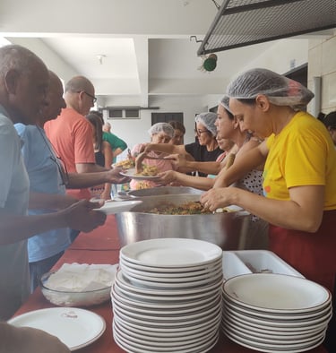 Próxima data prevista: 17/05/2026 a partir das 12h. Participação: compra de ticket que dá direito à marmitex que serve até duas pessoas. Os valores são divulgados previamente nos canais de comunicação da casa.