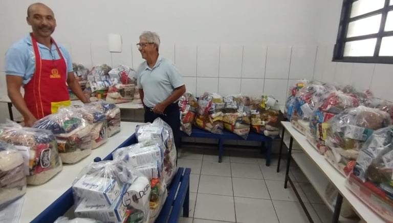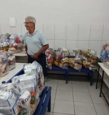 Grupo de coleta, montagem, distribuição de cestas e sopa fraterna
